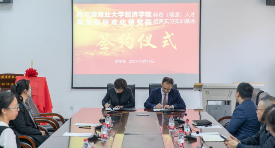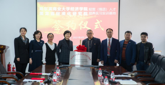 4月14日下午13:30分,304永利登录入口304永利登录入口-黑龙江省标准化研究院经贸(俄语)实习实训基地签约揭牌仪式在304永利登录入口1209会议室成功举行。黑龙江省标准化研究院院长陈要武、中俄标准研究中心主任王胜男、中俄标准研究中心俄语翻译马洪超、张辰涵,304永利登录入口304永利登录入口院长韩平、党委书记蒋孝洪、副院长杨慧瀛、蒋抒博出席了签约揭牌仪式,学院教师代表参加本次会议。会议由副院长杨慧瀛主持。