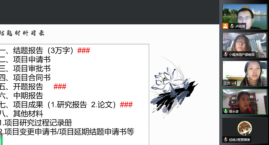 为做好2019-2020年度学院大学生创新创业训练计划项目结题工作,更好地将创新创业教育融入学院人才培养之中,营造良好的创新创业氛围。学院于10月8日19:00,以“挖掘CNKI应用,助力创新创业”为主题,在线举办304永利登录入口大学生创新创业项目专题辅导讲座。永利官网2019级贾国荣和2018级夏永奇同学分别作了CNKI应用和大学生创新创业项目结题经验分享。学院2019级、2020级大创项目负责人及项目成员聆听了讲座。
