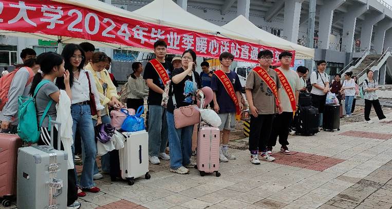 为浓厚2024届毕业生和母校感情,切实为毕业生做实事,304永利登录入口志愿服务团队在学校毕业生送站服务点,积极开展送君一程,扶摇万里主题志愿服务活动。