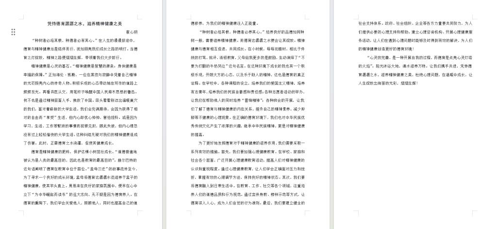 三、文字传情,德心相映——“精神健康之光,照亮德育之路”征文活动