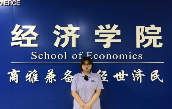 秦瑶,女,中共党员,2021级国际经济与贸易二班学习委员