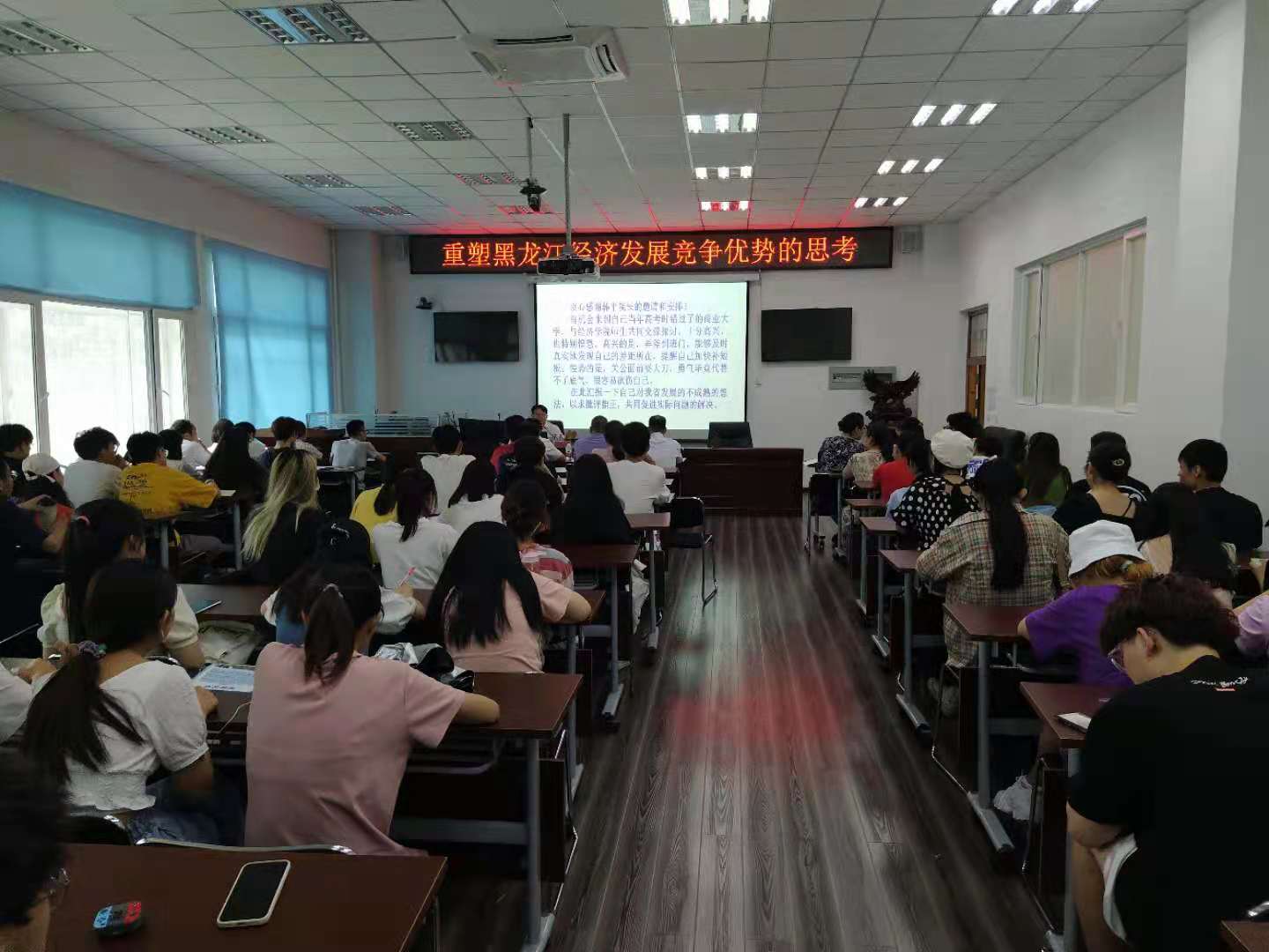 阎教授对黑龙江省经济发展现状及存在问题进行了深入浅出的探讨,指出现实逼迫我们转换思路谋出路;围绕企业发展需求,指出了我省如何优化营商环境;着眼竞争现实,如何确定产业发展方向和规模结构。阎教授的讲座非常接地气,语言诙谐幽默,整个讲座气氛良好,互动热烈,取得了很好的效果。与会师生纷纷表示,聆听了阎教授的报告后受益匪浅,对龙江经济的发展现状有了更清晰的认识,对龙江经济问题有了更深刻的理解。