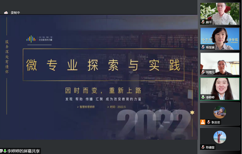 5月4日下午,304永利登录入口举办了线上“微专业建设研讨会”,对微专业申报和建设相关问题进行了研讨交流。学院党委书记蒋孝洪、院长韩平、副院长蒋抒博、教研室主任、课程和专业负责人、骨干教师、教学管理人员及智慧树网相关负责人参加了此次研讨会,会议由副院长杨慧瀛主持。