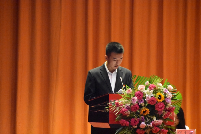 随后,教师代表经济学教研室主任李燕副教授发言。她提出,新同学应志存高远,在广阔天地中大有可为,叮嘱大家要记住三个关键词。一是融入,要多与老师同学们沟通交流,不要孤芳自赏;二是勇敢,“自信人生二百年,会当击水三千里”,同学们要培养自己成为德智体美劳社会主义接班人,面临困难不纠结不逃避,善于奋斗;三是坚持,“道阻且长,行则将至。”当面临机遇与历史使命之时,要坚守初心,苦练本领,珍惜时光,超越自我,尽心尽力。