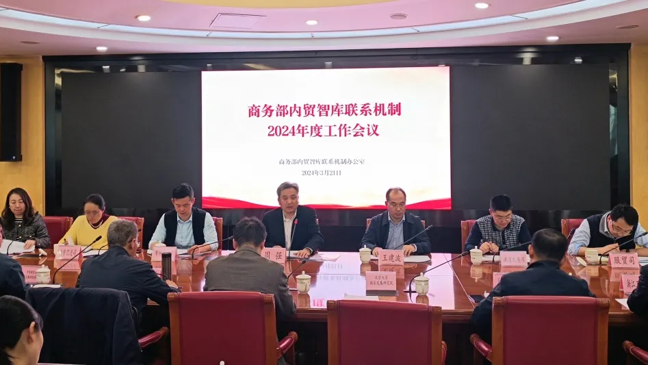 3月21日,商务部内贸智库联系机制2024年度工作会议在北京举办,本次会议结合全国两会精神和内贸司局研究需求,探讨内贸智库2024年度研究工作计划。会议由商务部市场司周强司长主持,商务部内贸相关司局、国内贸易智库单位和商业院校负责人、代表共50余人出席本次会议。会上,商务部市场建设司、流通发展司、消费促进司、服贸司、电子商务司相关人员,分别介绍了对内贸智库的研究需求。